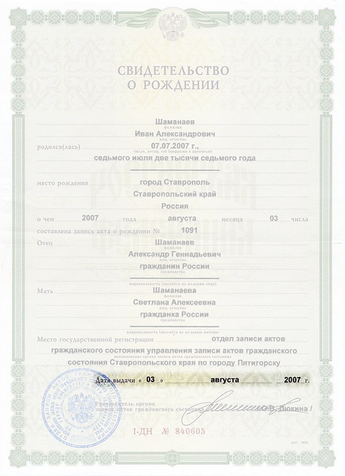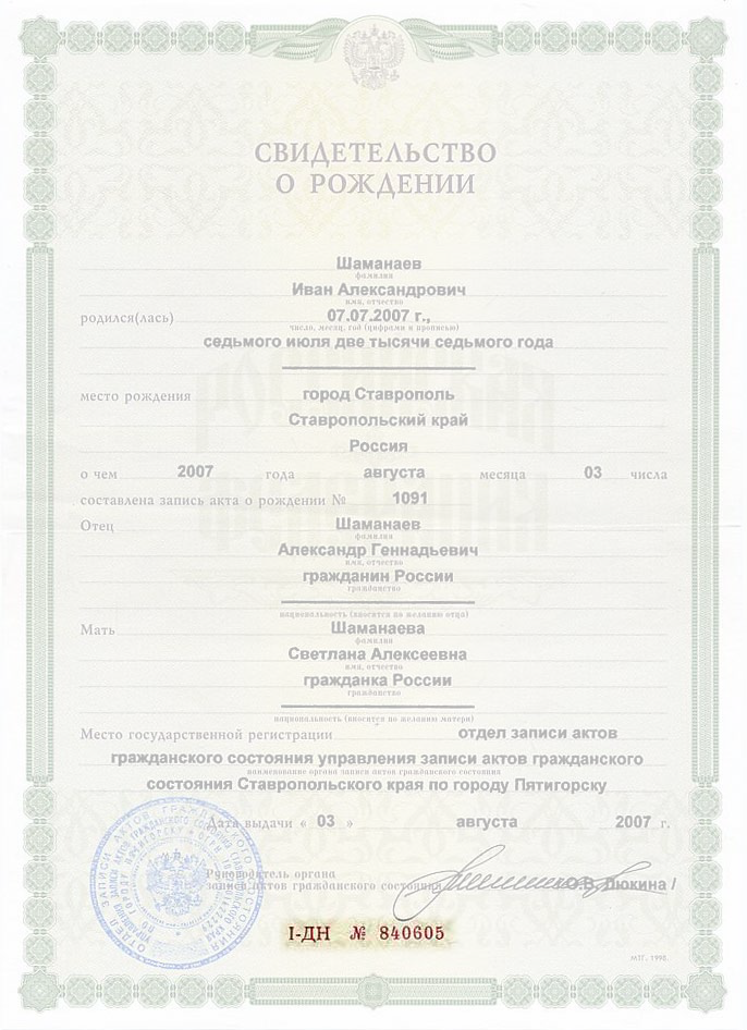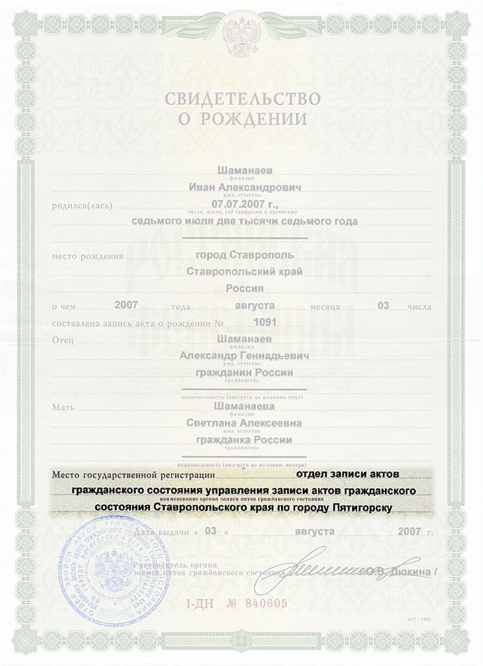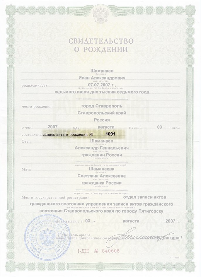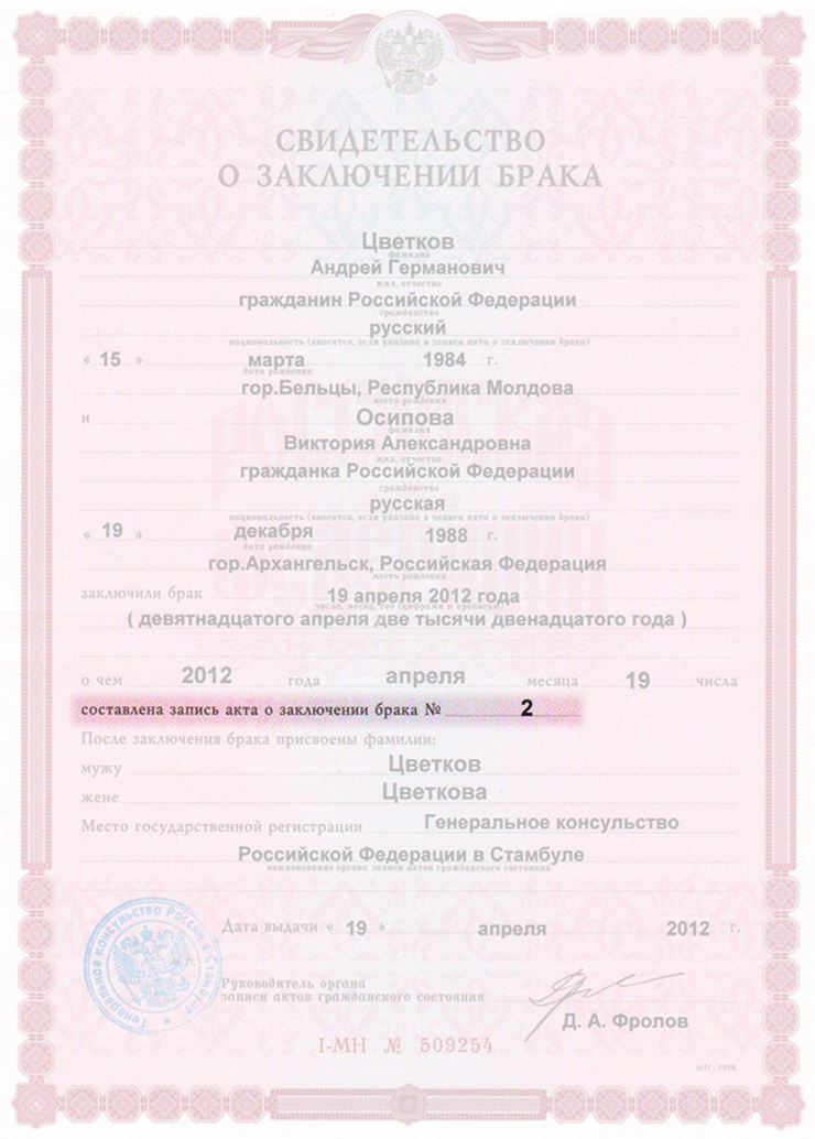 Серия и номер свидетельства о браке