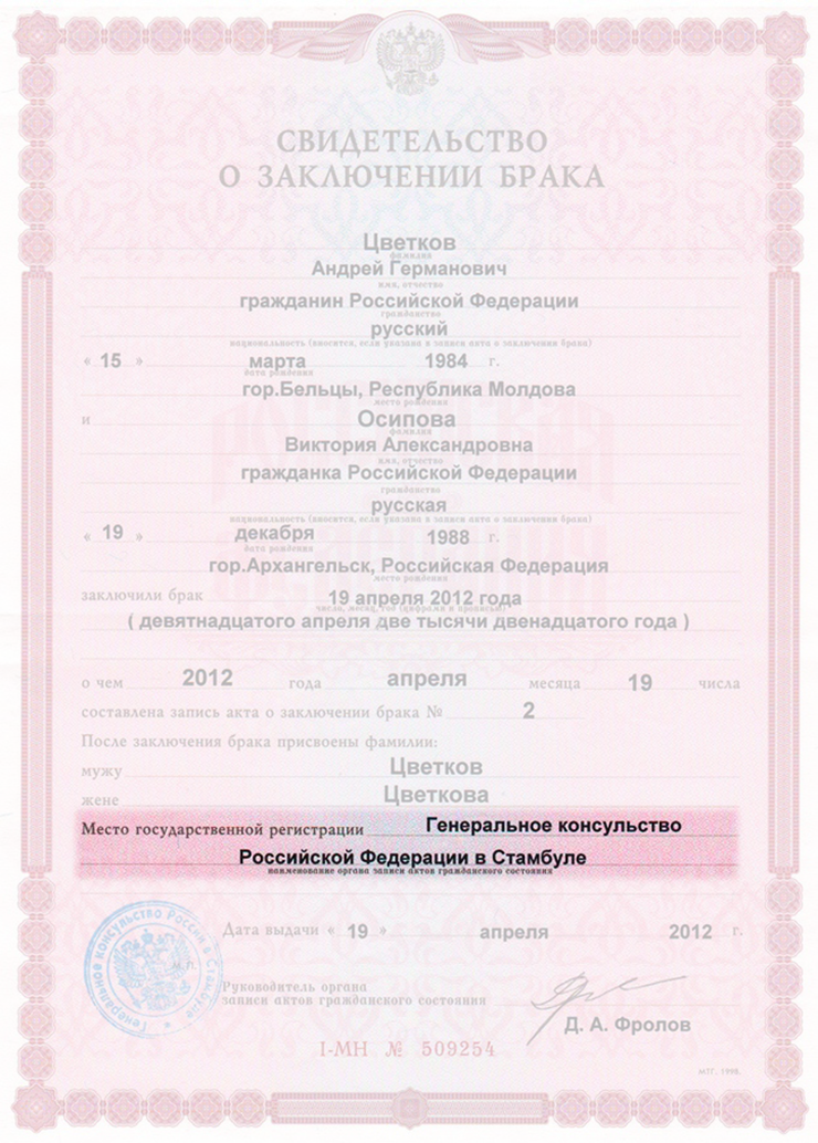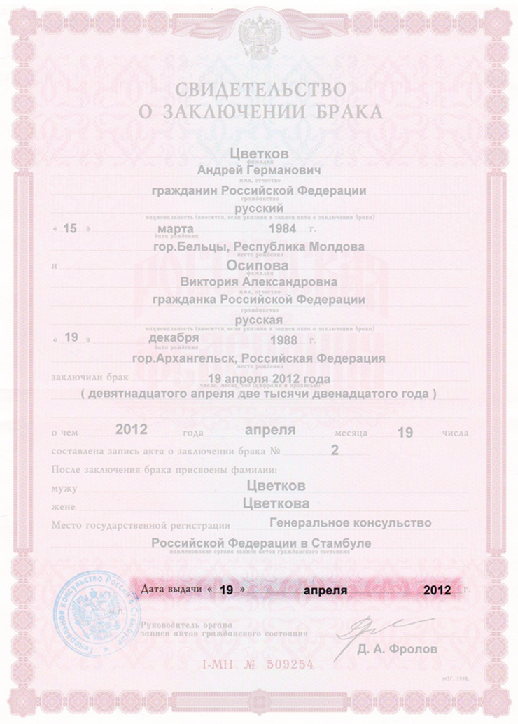Кем выдано свидетельство о браке